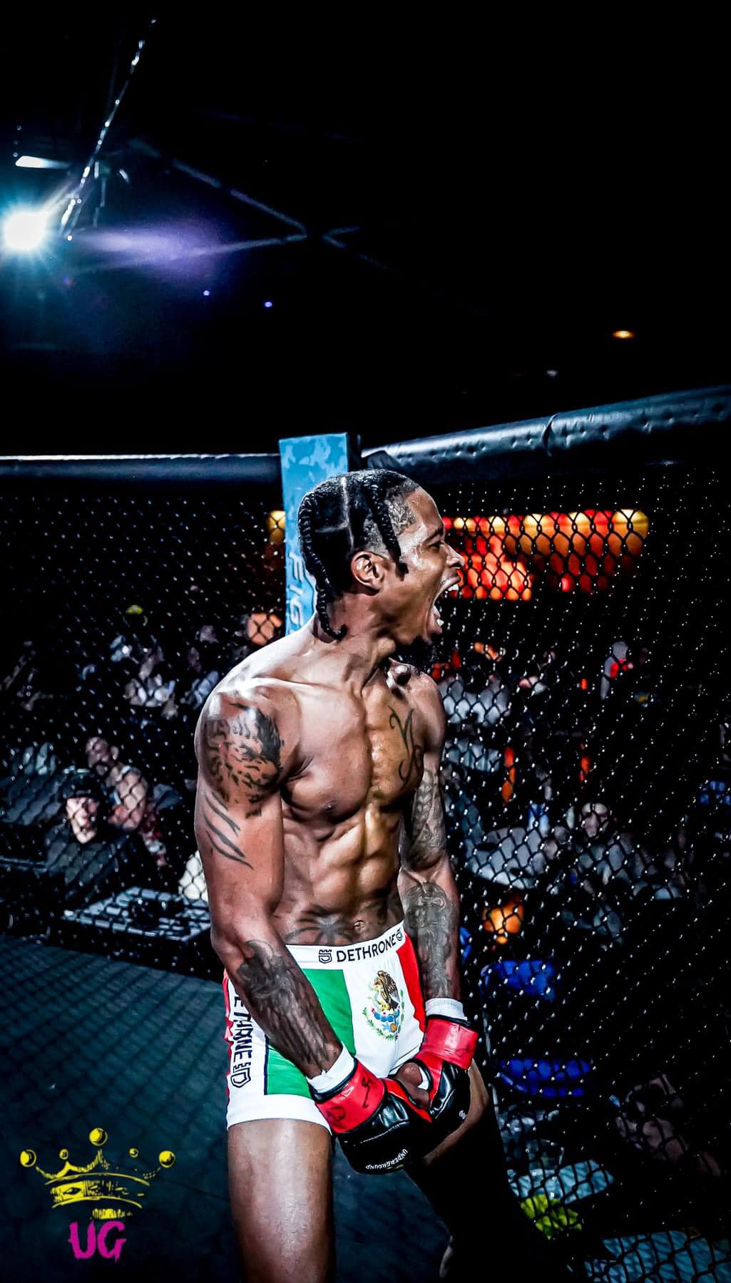 Proudly Black and Mexican, he carries the strength, culture, and resilience of both sides of his heritage into every round. Outside the cage, he’s a devoted father and husband, working hard to provide, protect, and lead by example. His loyalty runs deep, from his family to his brothers in the gym, to the three massive dogs he calls his pack: a Cane Corso, a Rottweiler, and a Rott mix. That’s where his pride lives , in the home he builds and the warriors he raises.