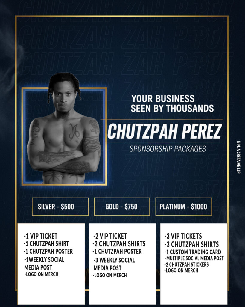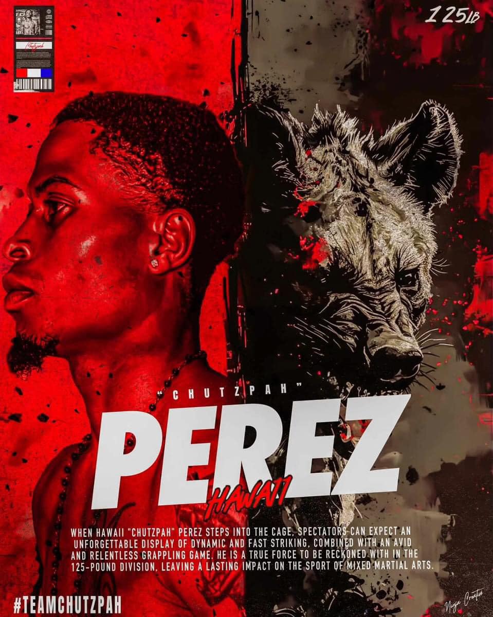 Hi Chutzpah Perez is known for high-velocity striking, slick transitions, and the rare ability to shine both on the feet and on the ground. With a strong start to his pro debut and no intention of slowing down until his late 30s, Perez is stepping into this new era with fire, discipline, and a hunger that cannot be faked.